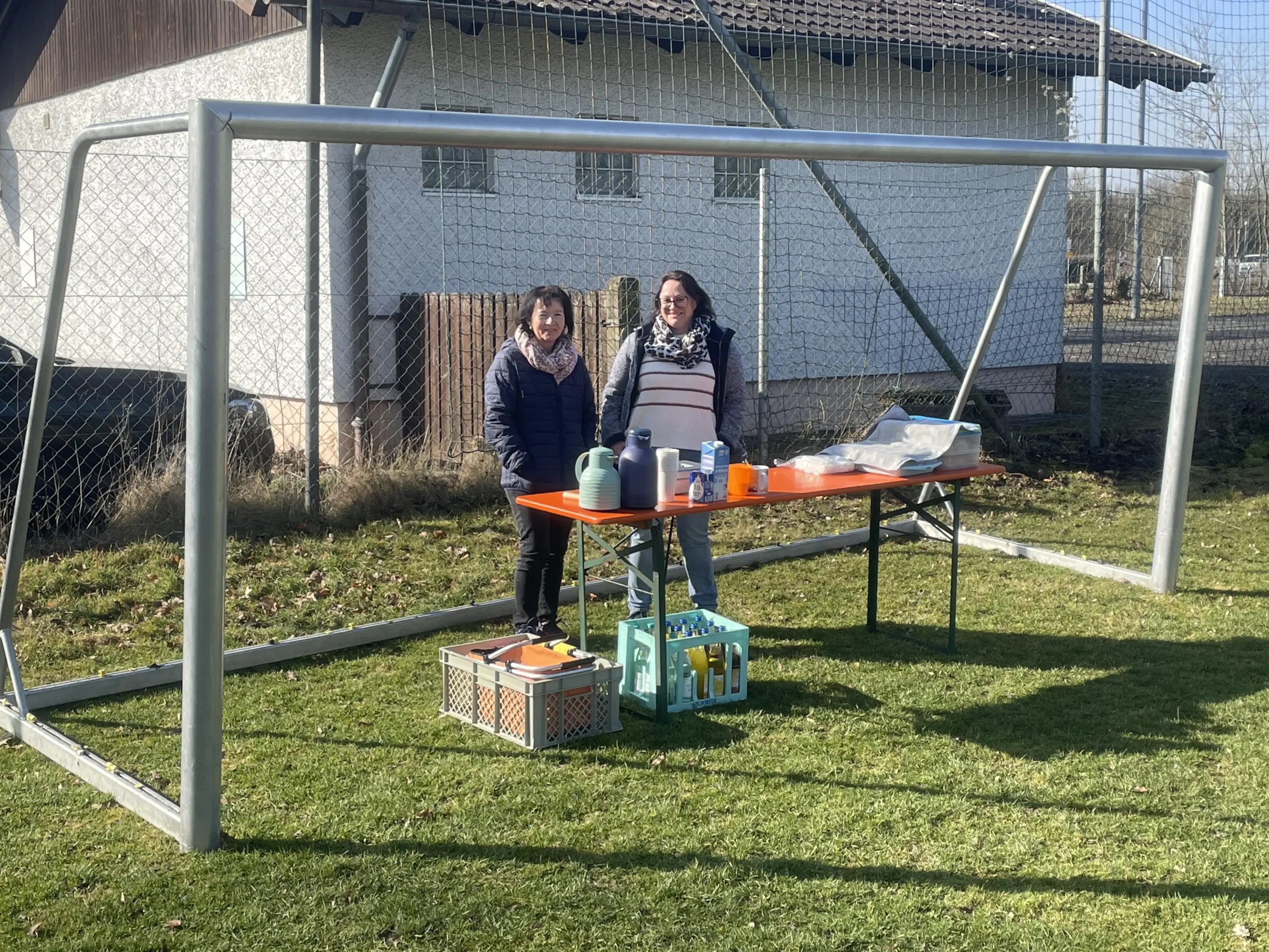 Selbst wenn „ihre Mannschaft“ ein Spiel auf dem Nebenplatz austrägt, sind Irmgard (li.) und Gudrun mit „ihrem Kiosk“ zur Stelle!