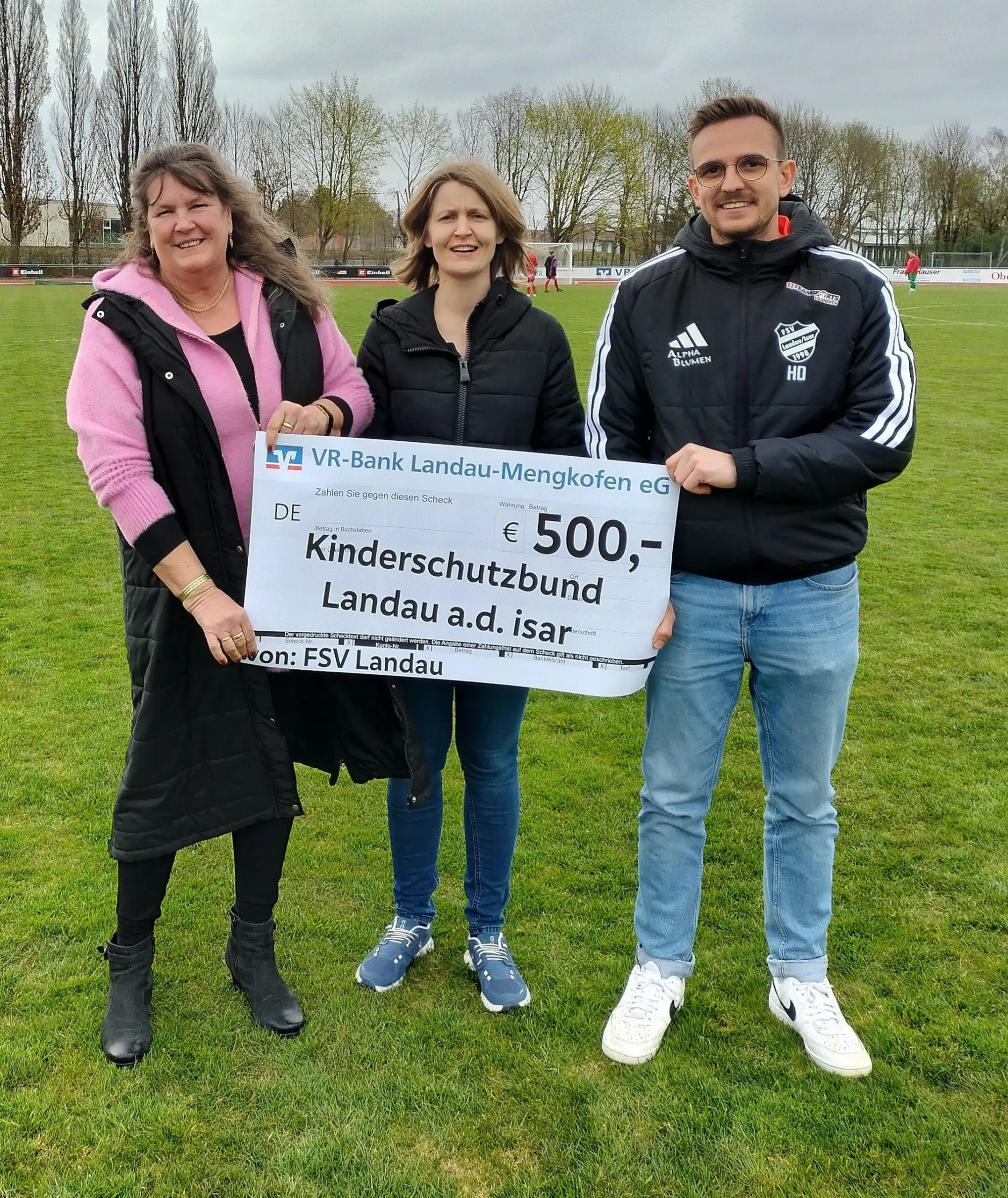 Ein starkes Zeichen für soziales Engagement setzten die Spieler vom Kreisliga-Team des FSV Landau beim Heimspiel gegen den TSV Pilsting, denn in der Halbzeitpause wurde eine Spende in Höhe von 500 Euro an den Kinderschutzbund Landau übergeben. Die Summe stammt aus der Mannschaftskasse und ist das Ergebnis einer bewussten Entscheidung in der Weihnachtszeit. Anstelle des traditionellen Beschenkens innerhalb der Mannschaft verzichteten die Spieler, Trainer und Betreuer auf Präsente und sammelten das Geld, um damit einen wohltätigen Zweck in der Region zu unterstützen. Überreicht wurde der Spendenscheck an die 1. Vorsitzende des Kinderschutzbundes, Maria Reitberger. Für einen besonders persönlichen Hintergrund sorgte dabei die familiäre Verbindung, denn Frau Reitberger ist die Mutter der beiden FSV-Spieler Dominik und Florian Reitberger. Der Kinderschutzbund Landau engagiert sich seit vielen Jahren für das Wohl von Kindern und Familien in der Region und leistet wertvolle Unterstützung in unterschiedlichsten Lebenslagen. Die Übergabe erfolgte durch den ehemaligen Mannschaftskapitän und Ausschuss-Mitglied Hannes Obermeier gemeinsam mit der Ehrenamtsbeauftragten des Vereins, Melanie Fröschl. Die Aktion wurde von Zuschauern wie Beteiligten gleichermaßen positiv aufgenommen und unterstreicht den starken Gemeinschaftssinn innerhalb des Vereins.