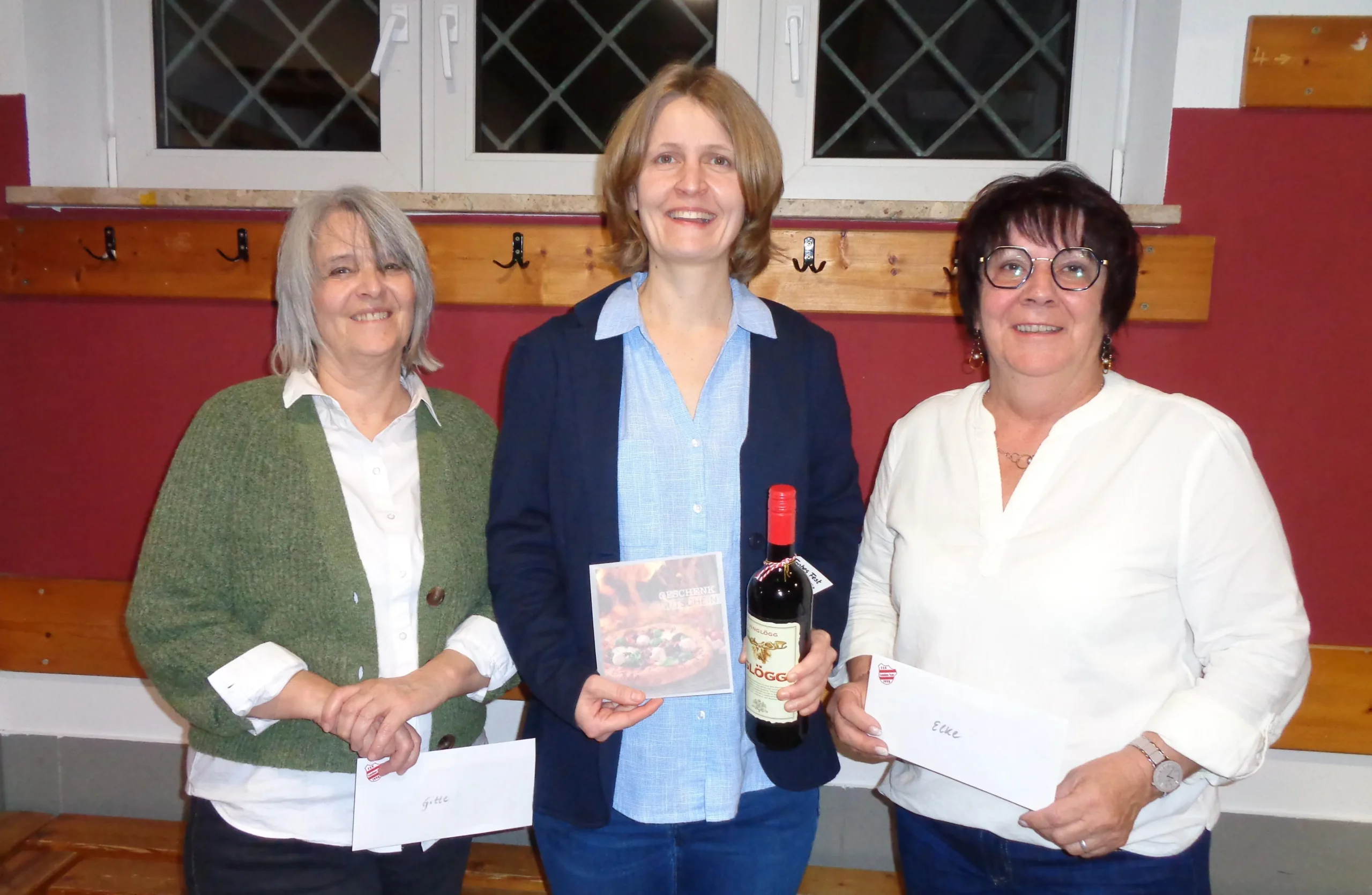| Wie bei allen 19 namentlich erwähnten „guten FSV-Geistern“ so hatte sich Vorstands-Mitglied Simon Weinzierl auch bei der stets zuverlässigen Lokal- und Küchen-Crew um Brigitte Kindler (von links), Melanie Fröschl und Elke Piller mit Präsenten bedankt! |